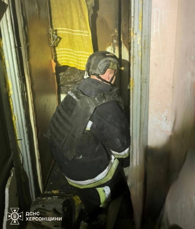 Зазначається, що вночі на номер оперативно-координаційного центру ГУ ДСНС України у Херсонській області надійшло повідомлення про виникнення пожежі в одній з квартир багатоквартирного будинку.
